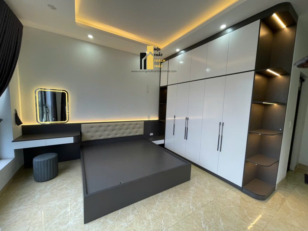 Thiết kế & thi công phòng ngủ hiện đại trọn gói từ xưởng nội thất Thạch Thất – không gian tinh tế với gỗ cao cấp, phụ kiện bền bỉ, màu sắc sang trọng chuẩn xu hướng. Cam kết an toàn sức khỏe, bảo hành dài hạn, tối ưu công năng sử dụng cho từng mét vuông. Mẫu phòng ngủ sang trọng được thiết kế tinh giản nhưng sang trọng. phòng ngủ tối ưu công năng – đẹp từ chi tiết nhỏ, chuẩn từng đường nét phòng ngủ, phòng ngủ đẹp, thiết kế phòng ngủ, thi công phòng ngủ, phòng ngủ hiện đại, nội thất phòng ngủ, tủ quần áo, phòng ngủ sang trọng #noithatthachthat#thietkenoithat#noithathiendai#thicongnoithat#noithatdep#noithatgiare#phongngudep